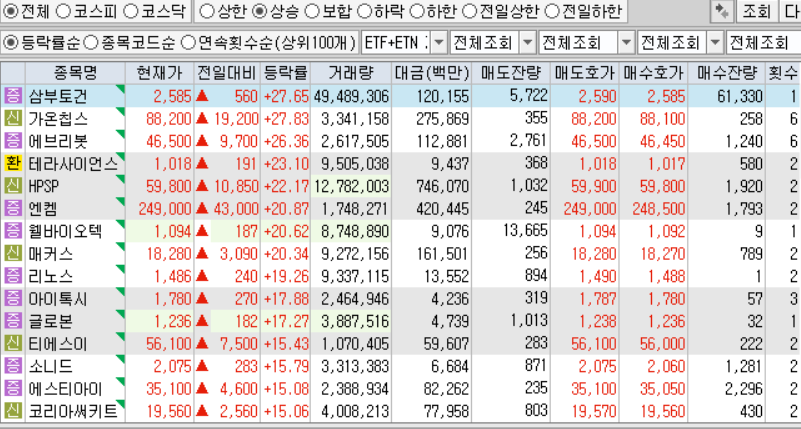 ※ 종목 명을 클릭하시면  기업개요, 종목 설명 및 실시간 주가를 확인하실 수 있습니다.