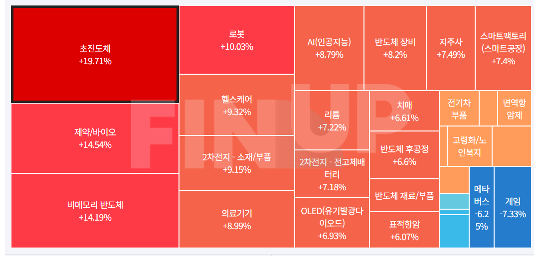 출처:Finup Theme Log 코스피 특징주 ※ 종목 명을 클릭하시면 기업개요, 종목 설명 및 실시간 주가를 확인하실 수 있습니다. 특징종목 이슈요약 아센디오 (012170) 초전도체 관련 사업 추진 등에 상한