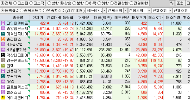 ※ 종목 명을 클릭하시면  기업개요, 종목 설명 및 실시간 주가를 확인하실 수 있습니다.