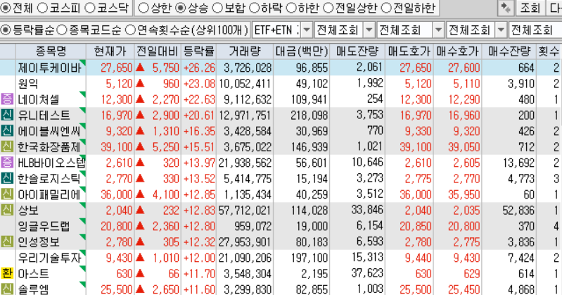 240521 특징주 [화장품,의료기기, 제약/바이오] 대성창투, 웅진, 이오플로우, 제이투케이바이오