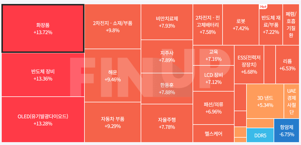 당일 지수 및 종목등락, 테마MAP