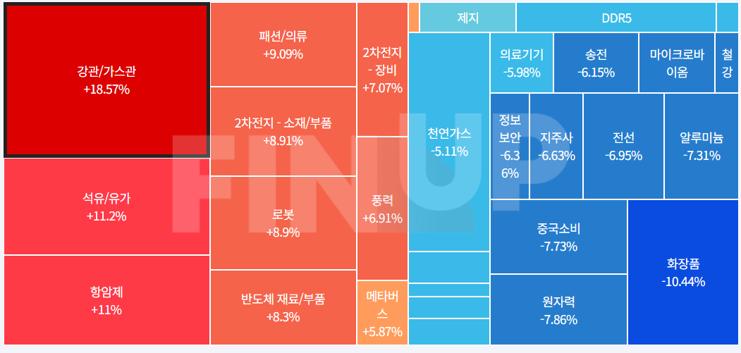 목차    당일 지수 및 종목등락, 테마맵 (MAP)   출처:Finup Theme Log  코스피 특징주※ 종목 명을 클릭하시면  기업개요, 종목 설명 및 실시간 주가를 확인하실 수 있습니다. 특징종목이슈요약