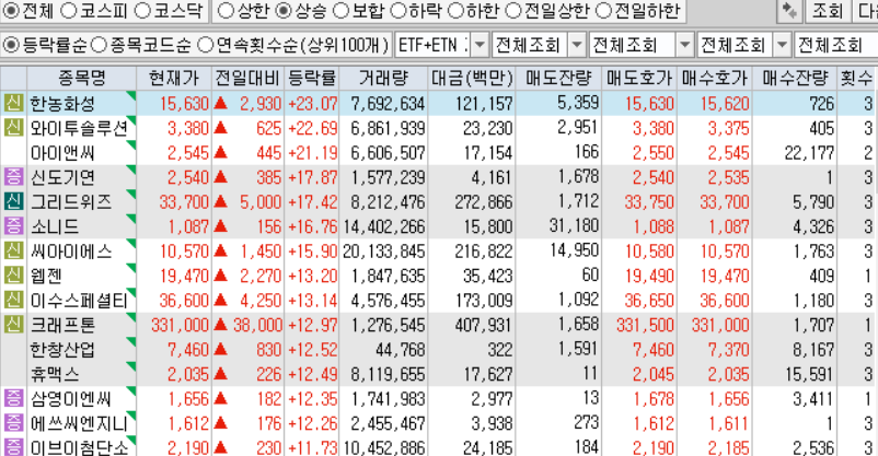 8월13일 특징주 + 관련 뉴스