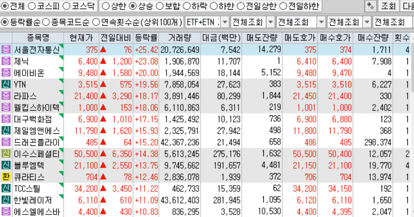 | 드래곤플라이 (030350) 485원 (+15.20%) |