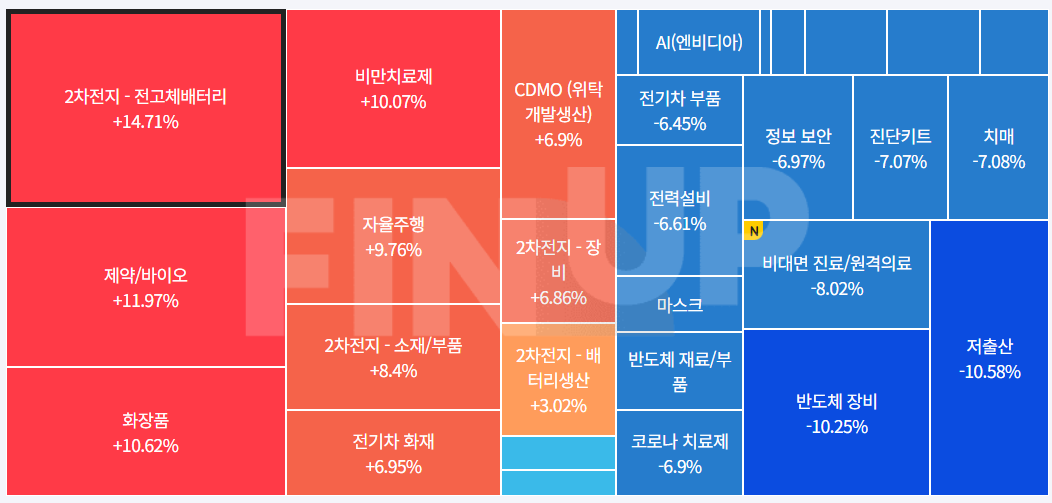 당일 지수 및 종목등락, 테마맵 (MAP)