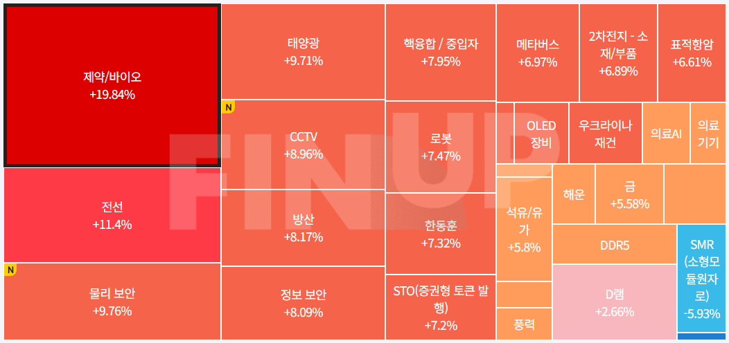 목차 당일 지수 및 종목등락, 테마맵 (MAP) 출처:Finup Theme Log 코스피 특징주※ 종목 명을 클릭하시면 기업개요, 종목 설명 및 실시간 주가를 확인하실 수 있습니다. 특징종목이슈요