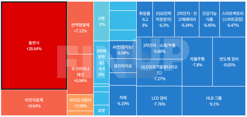 (예스24, 한세예스24홀딩스, 웅진씽크빅, 웅진, 밀리의서재, 예림당, 삼성출판사, 컴퍼니케이, 다산네트웍스, 와이랩, 양지사)