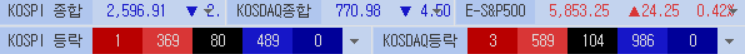 당일 지수 및 종목등락, 테마맵 (MAP)