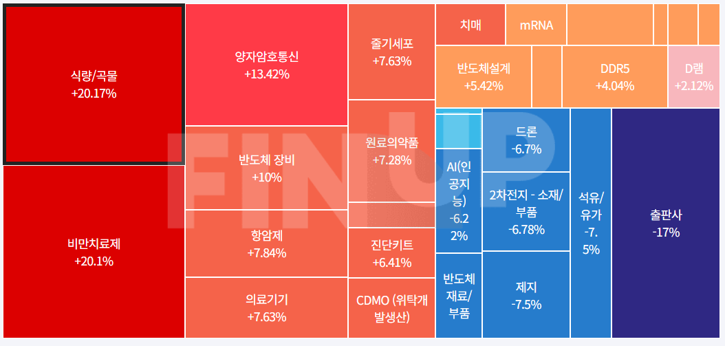 목차 당일 지수 및 종목등락, 테마맵 (MAP) 출처:Finup Theme Log 코스피 특징주※ 종목 명을 클릭하시면 기업개요, 종목 설명 및 실시간 주가를 확인하실 수 있습니다. 특징종목이슈