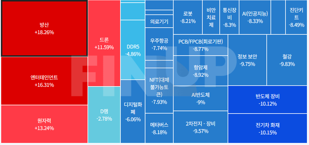 당일 지수 및 종목등락, 테마맵 (MAP)