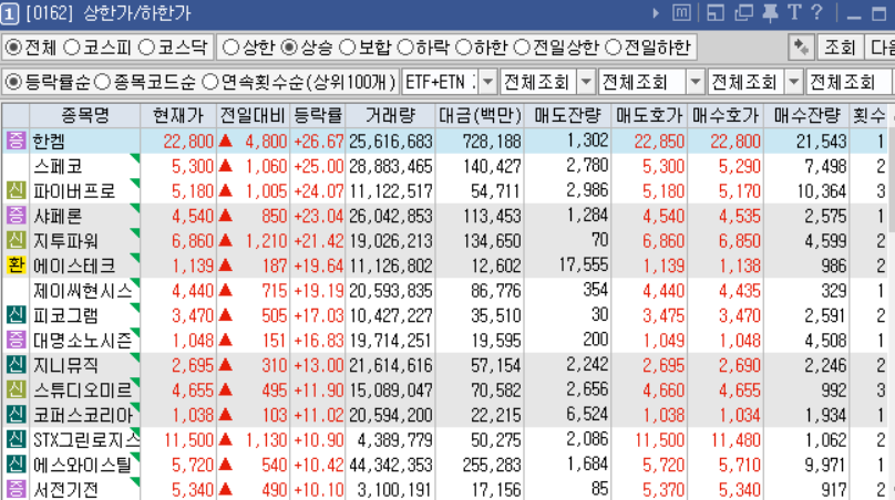| 한켐 (457370) 22,800원 (+26.67%) |