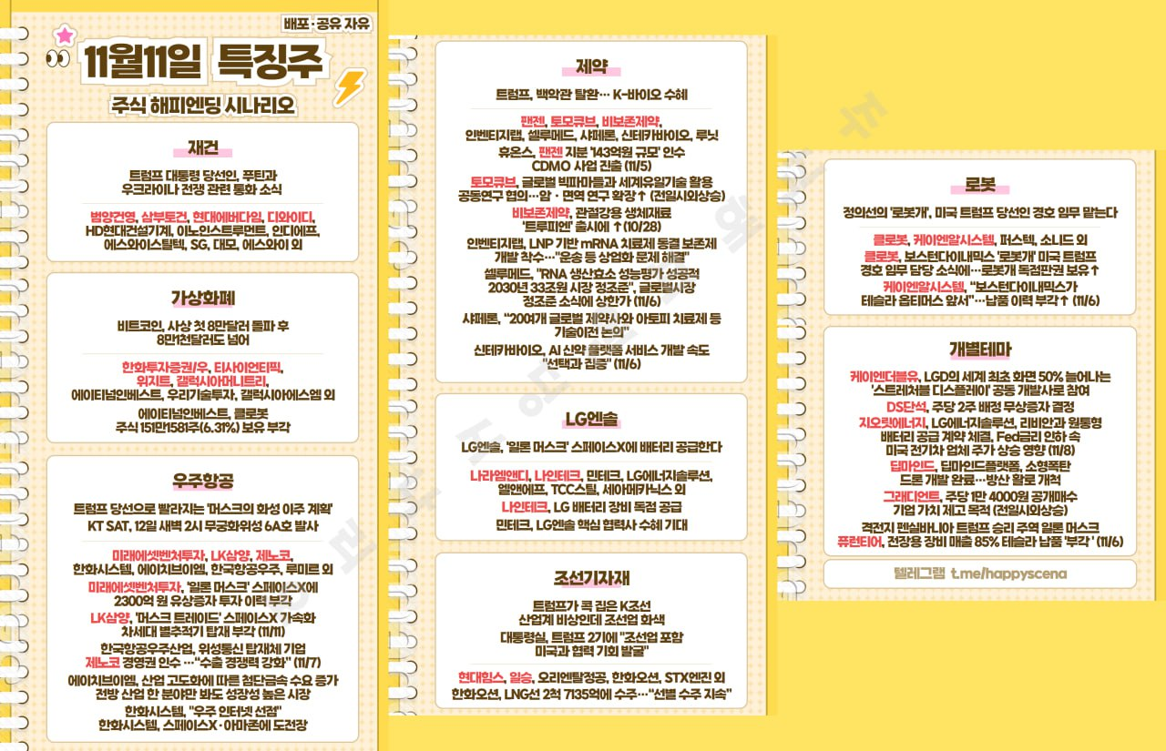 11월 11일 특징주 + 관련 뉴스