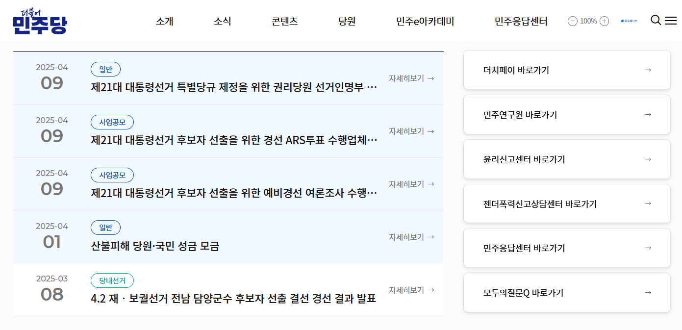- 윤석열 대통령 탄핵 인용(4월 4일) 이후, 민주당은 특별당규 제정을 통해 경선 일정을 마련 중입니다. 4월 13일경 당규 확정이 예상되며, 곧바로 후보 등록이 시작될 가능성이 높습니다.