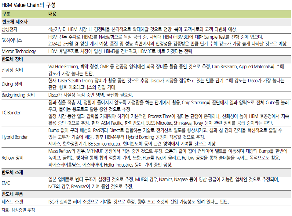 반도체업황, HBM 밸류체인, SK하이닉스 밸류체인, 삼성전자 HBM 밸류체인