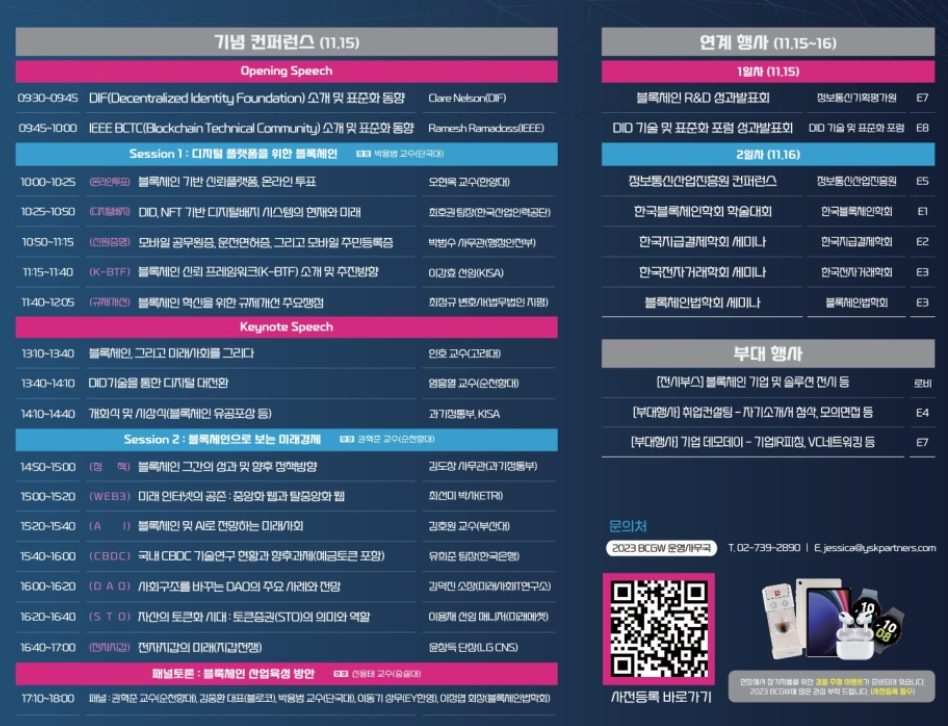 행사에는 다음과 같은 다양한 컨퍼런스와 세마나, 블록체인 제품 및 서비스 전시부스드등이 운영되며 참가비용은 무료이나 사전등록을 하셔야 참석가능하므로 관심있으신 분들은 행사에 참여하셔서 좋은 정보 얻어가시길 바랍니다. 특히 사전 등록하신 분들께 현장 방문시 선착순으로 자료집을 배포한다고 하니 참고하시길 바랍니다.