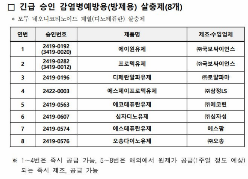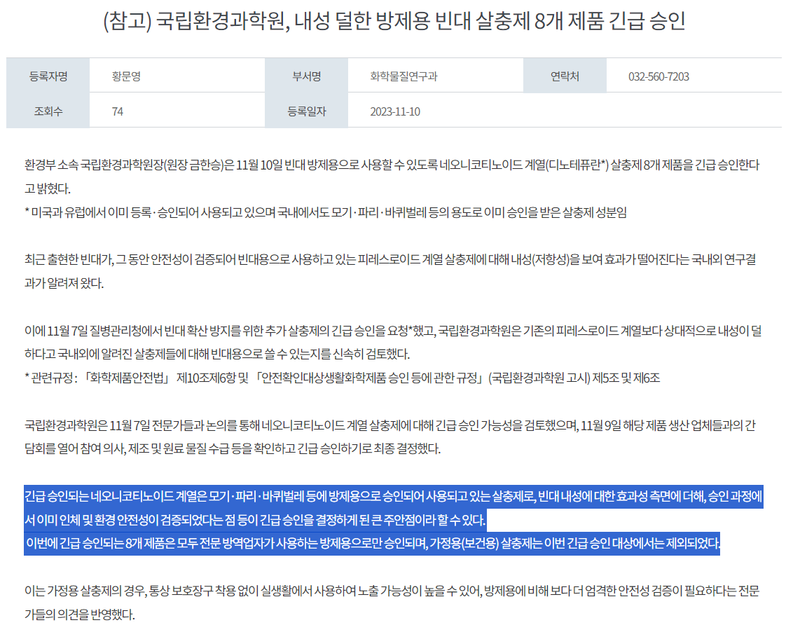 [빈대 살충제 긴급승인 보도자료]