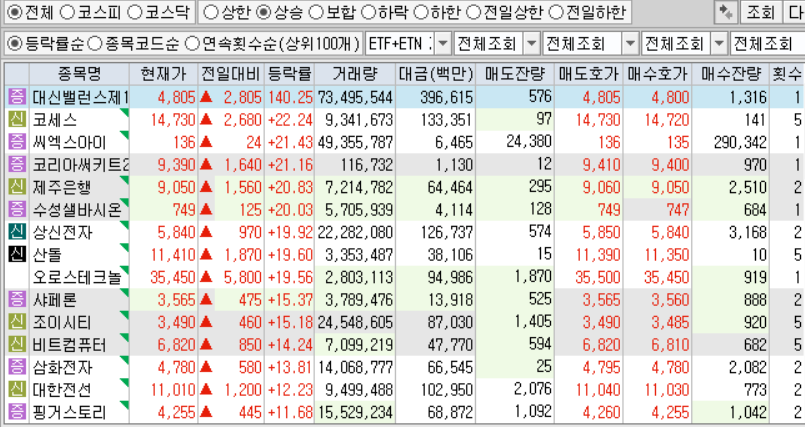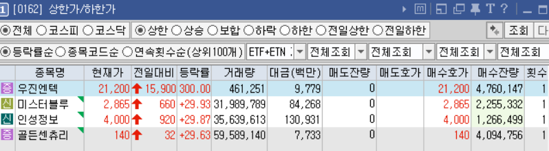 신규 상장 첫날 상한가 |