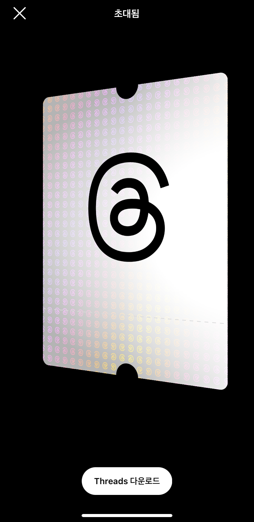 ③스레드(Threads) 미가입 계정의 경우 Threads 다운로드 링크로 이어지는 초대장 팝업, 선택 시 스레드(Threads) 어플 다운로드 이후 위에서 설명했던 2- ② 부터 가입 절차 진행됨 |