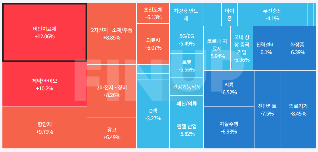 목차 당일 지수 및 종목등락, 테마맵 (MAP) 출처:Finup Theme Log 코스피 특징주※ 종목 명을 클릭하시면 기업개요, 종목 설명 및 실시간 주가를 확인하실 수 있습니다. 특징종목이슈