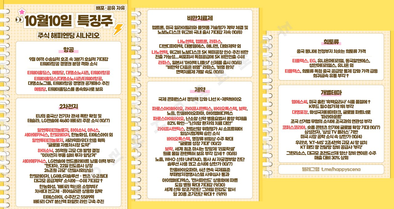 10월 10일 특징주 + 관련 뉴스