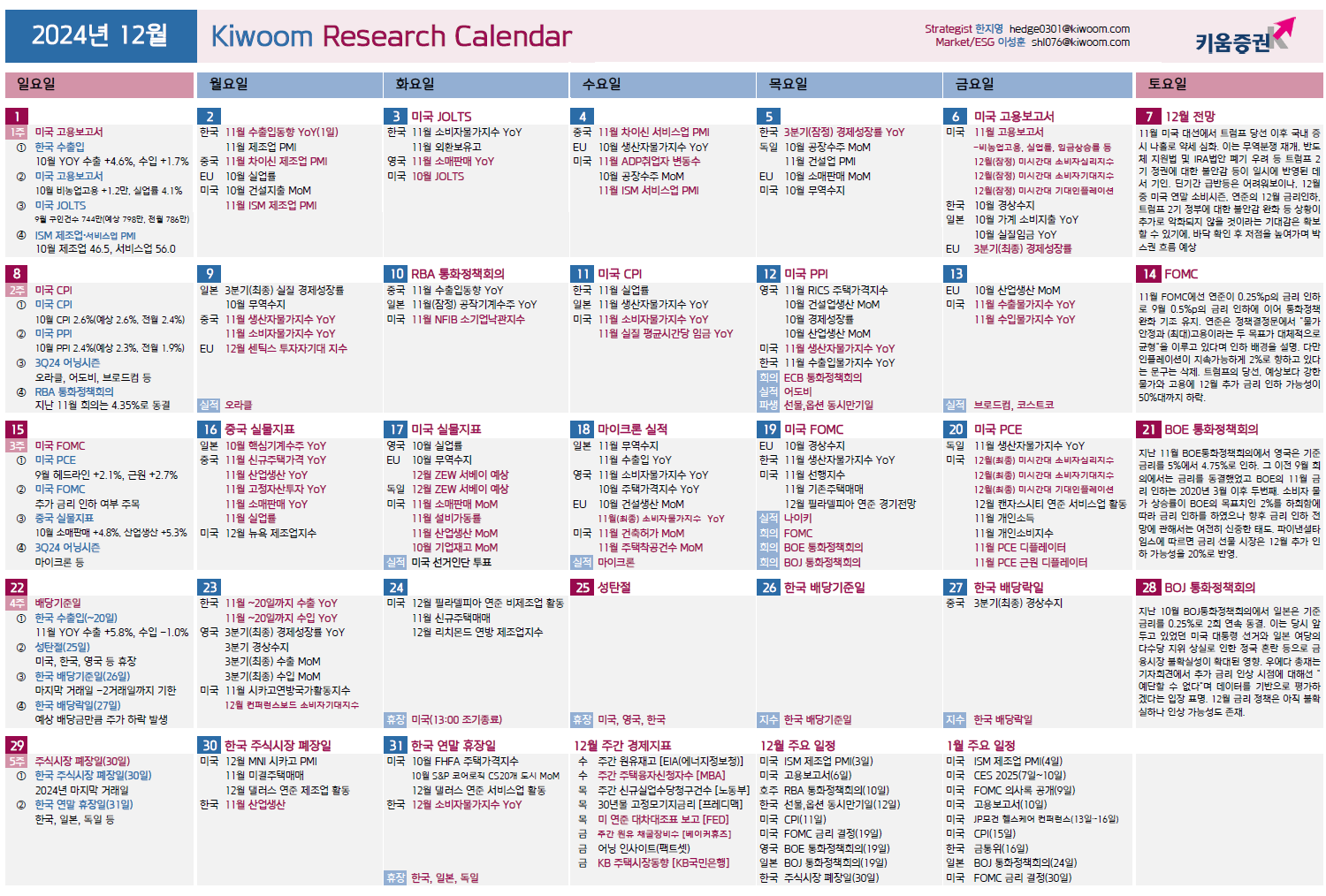 증시 캘린더 모음 다운로드 ( 24년 12월)