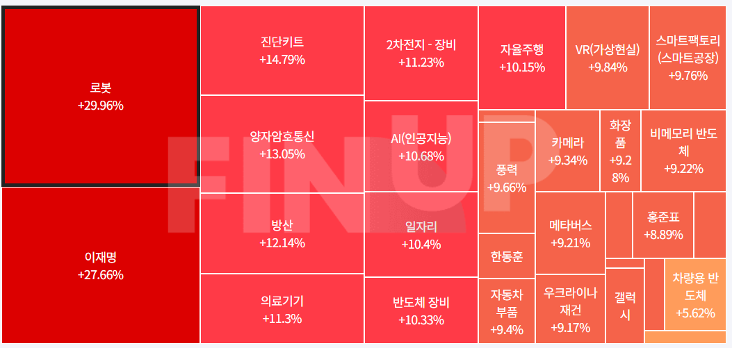 당일 지수 및 종목등락, 테마맵 (MAP)