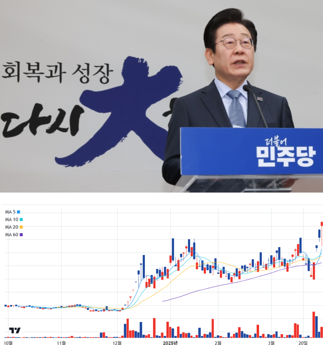- 긍정적 요인: 이재명 대표의 대권 가능성이 높아질수록 관련주는 단기적으로 상승 모멘텀을 유지할 가능성이 큽니다. 특히 총선이나 대선을 앞두고 정치적 이슈가 부각되면 추가 상승 여력이 있습니다.