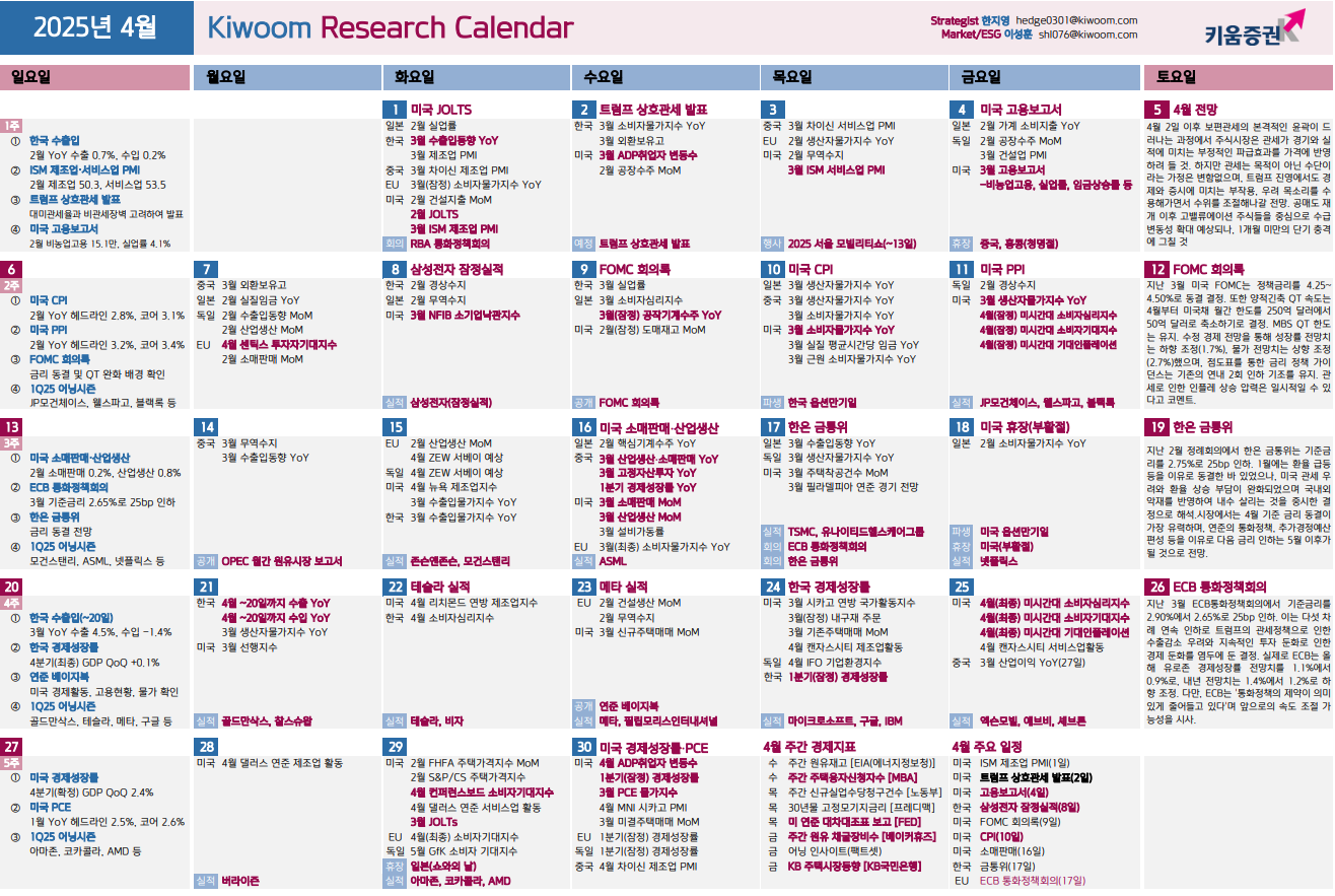 증시 캘린더 모음 다운로드 ( 2025년 4월)