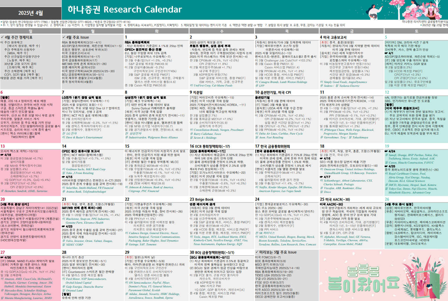 하나증권 4월 증시 캘린더