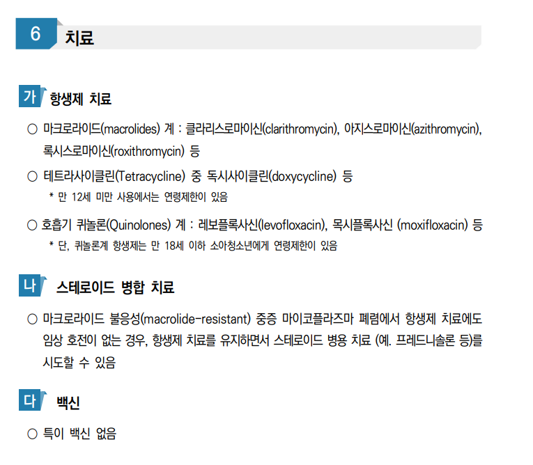 마이코플라즈마(Mycoplasma) 폐렴 증상, 진단, 예방, 치료