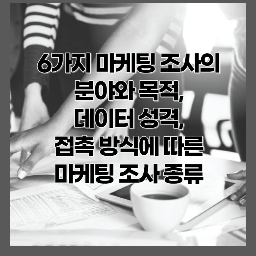 마케팅 조사는 마케팅의 다양한 측면에 대한 통찰력을 얻기 위해 마켓 정보 및 소비자의 욕구등의 정보를 수집, 분석 및 해석하는 중요한 업무입니다. 이번 포스팅에서는 6가지 마케팅 조사의 분야와 목적, 데이터 성격, 접촉 방식에 따른 마케팅 조사 종류에 대해 알아보겠습니다.