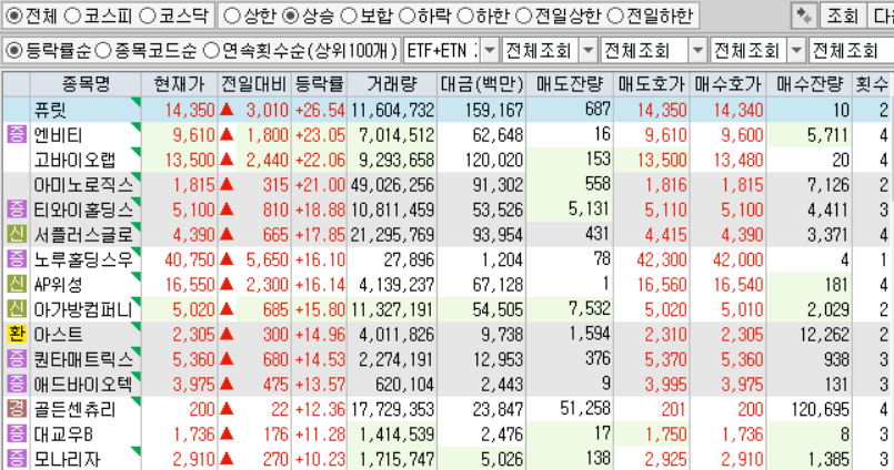 ※ 종목 명을 클릭하시면 기업개요, 종목 설명 및 실시간 주가를 확인하실 수 있습니다.